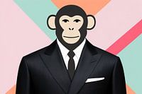 Koop dit Popart kunstwerk Aap in stijlvol zwart pak van Art & Soul Creations op canvas, aluminium dibond, (ingelijste) fotoprint, behang en ArtFrame, op maat geprint in Fine-Art kwaliteit.
