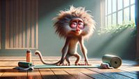Op deze foto zie je een kleine aap, een typische ochtendmopper, die de uitdaging van zijn ochtendyoga aangaat. Het licht van de ochtendzon stroomt door de ramen en baadt de kamer in een warm, kalmerend licht, dat de aap echter nauwelijks lijkt te troosten. Zijn ogen zijn roodomrand, zijn haar steekt alle kanten op en zijn houding wordt…