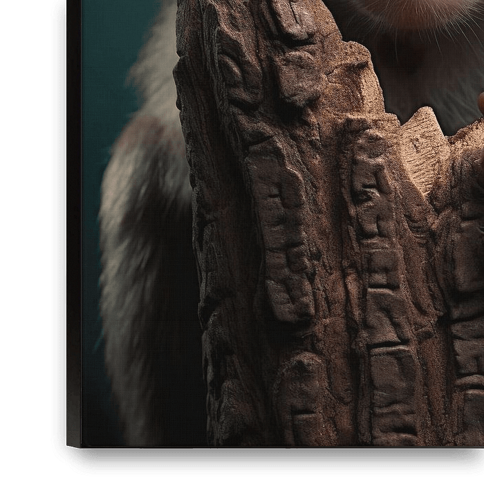 Een schuchter aapje siert dit beeld met zijn verlegen charme. Zijn grote ogen kijken voorzichtig naar de wereld om hem heen, terwijl zijn zachte vacht een gevoel van kwetsbaarheid uitstraalt. Het aapje houdt zijn staart dichtbij, als een beschermend gebaar, terwijl zijn schuchtere glimlach de tederheid van dit kleine wezen onthult. Een…
