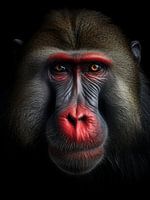 Portret van een aap met een rode neus.