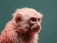 Simpel aapje in roze met groen. A.I. kunst voor aan je muur!