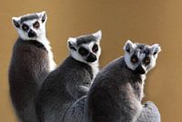 Portret ven 3 aapjes die mooi op een rijtje rond zaten te kijken.De vraag is wie bekijkt hier wie eigenlijk ?