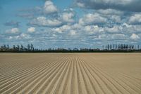 Ardappelruggen in het voorjaar in het Zeeuwse land met daarboven een fraaie wolkenlucht