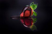 Koop de foto Aardbei met chocolade van Uwe Merkel op canvas, aluminium dibond, (ingelijste) fotoprint, behang en ArtFrame, op maat geprint in Fine-Art kwaliteit.