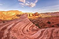 De prachtige vorm en kleuren van de rotsformatie die de Fire Wave wordt genoemd. In het Valley of Fire State Park in Overton, Nevada, VS.