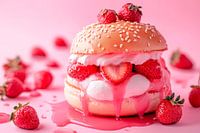 Koop de foto Aardbeienburger met room en saus van Poster Art Shop op canvas, aluminium dibond, (ingelijste) fotoprint, behang en ArtFrame, op maat geprint in Fine-Art kwaliteit.