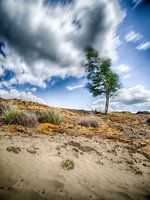 De lange belichtingstijd zorgt ervoor dat er beweging te zien is in de wolken die overwaaien. Door de wind gaat de boom heen en weer, wat de bovenste helft van de foto dynamisch maakt. De onderste helft brengt met een statische voorgrond en mooie zachte kleuren wat rust in de foto.