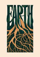 Een prachtige typografische illustratie met het woord "EARTH" geschreven alsof het wortels zijn.