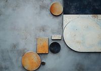 Aardetinten Abstracte Geometrie - Het gaat hier om een abstract schilderij met een samenstelling van geometrische vormen in diverse maten, tegen een betonachtige achtergrond. Het kleurgebruik is ingetogen met aarde- en neutrale tinten, doordringt van rustige blauwe en crèmekleurige nuances, terwijl de textuur varieert van glad tot iets…