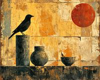 Aardetinten | Japandi of Rustic Solace | Aardetinten - Modern stilleven, Japandi-stijl, vogel, aardetinten