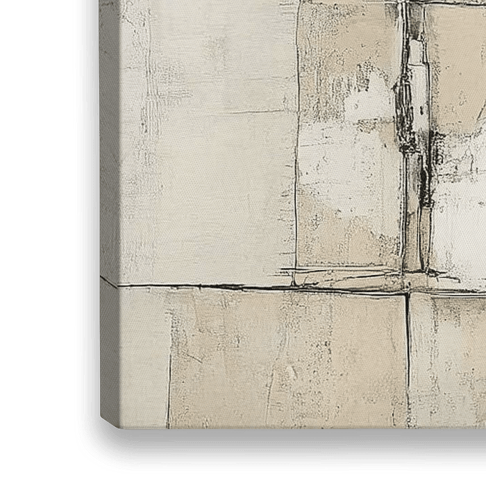 Aardetinten | Silent Harmony - Dit abstracte schilderij presenteert een palet van neutrale aardetinten, samengesteld uit blokken en horizontale banden die een gevoel van rust en harmonie opwekken.