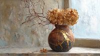 Zachte, minimalistische bloemencompositie die Japanse esthetiek combineert met rustige natuurlijke tinten, eenvoudige vormen en uitgebalanceerde negatieve ruimte, waardoor een serene, moderne en tijdloze botanische harmonie ontstaat.