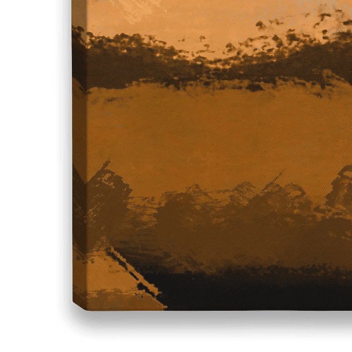 Abstract minimalistisch mixed media schilderij in warme aardetinten. Warm geel, bruin, roestbruin en zwart. Basis woonstijl, Wabi-Sabi, Japandi, Scandinavisch, Minimalistisch interieur.