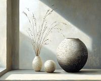 Stilleven Aardetinten | Quiet Contrast - Modern stilleven met vazen en herfstgrassen in neutrale aardetinten.