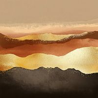 Aardetinten - Dit abstracte schilderij toont overlappende golven in aardetinten met accenten van glinsterend goud, waardoor een kalmerend en gestructureerd landschap van warmte en diepte wordt gecreëerd.