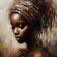Laat je betoveren door dit krachtige olieverfportret van een Afrikaanse vrouw met doek, geschilderd in warme aardetinten. Elk penseelstreek ademt trots, mysterie en verbondenheid met de aarde. De natuurlijke kleuren brengen haar schoonheid en kracht op een ingetogen, maar indrukwekkende manier tot leven. Dit werk straalt een tijdloze elegantie uit en nodigt uit tot reflectie. Een ode aan vrouwelijkheid, cultuur en innerlijke rust.