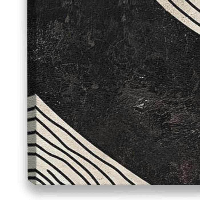 Aardse Abstractie - Dit gestileerde abstracte werk speelt met aardse terracotta tinten en diepzwarte texturen. De organische vormen in contrast met strakke lijnen geven het een dynamische en moderne touch, perfect voor het toevoegen van een artistiek element in een hedendaags interieur.