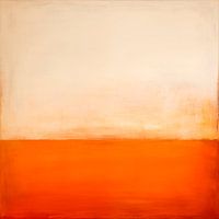 "'Aardse Afscheiding" is een abstract kunstwerk dat de essentie van de natuurlijke wereld omarmt, gesymboliseerd door een horizon waar lucht en aarde elkaar ontmoeten. De onderste helft van het schilderij, gedoopt in rijke oranje en aardetinten, roept het gevoel op van vruchtbare grond of een gloeiende zonsondergang, terwijl de bovenste helft, met zijn zachte crème- en beige tonen, de uitgestrektheid van de hemel of de rust van een zandstrand suggereert. Het is een stuk dat de schoonheid van overgangen viert, van dag naar nacht of van seizoenen, en voegt een vleugje warmte en reflectie toe aan elke ruimte.