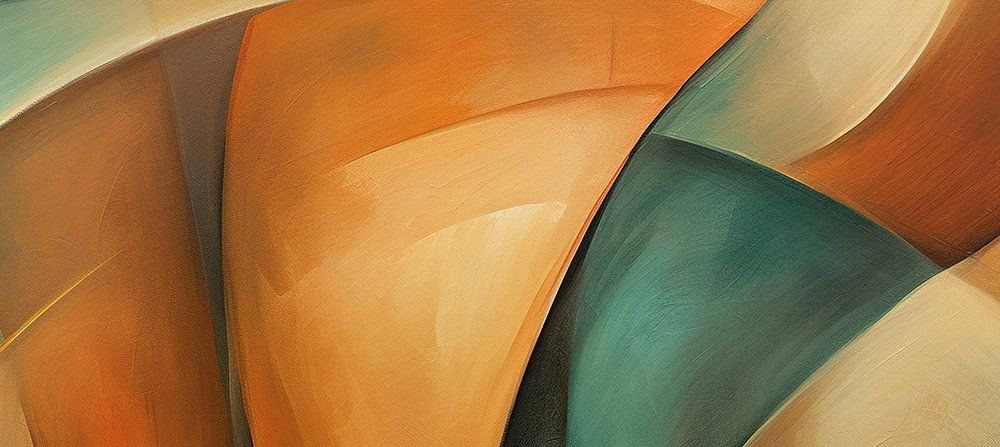Details: abstract, vormen, golvend, organisch, geometrisch, groen, oranje, beige, zacht, rustgevend