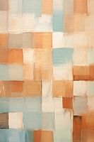 Aardse Mozaïek - Dit abstracte werk kenmerkt zich door een mozaïek van rechthoekige vormen, die een rustgevend maar speels patroon vormen. De aardse kleurenpalet met zachte terracotta, créme en lichtblauwe tonen verleent het stuk een warme, kalmerende uitstraling, terwijl de zichtbare penseelstreken een handgemaakte charme toevoegen.