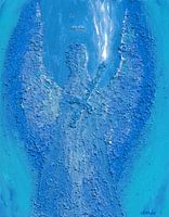 Dit abstracte schilderij toont de aartsengel Michael met zijn lichtzwaard in prachtige blauwe tinten