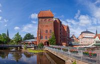Abdij waterkunst op de Ilmenau, oude binnenstad, Lüneburg, Nedersaksen, Duitsland, Europa