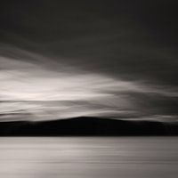 Abstrakte Landschaft am See, mit Wolken und Abendlicht. Minimalistische Fotografie in schwarz-weiß aus der "Dreamscapes" Serie.