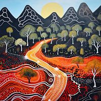 In het tapijt van artistieke expressie staat de Aboriginal geïnspireerde pointillistische serie als een diep testament voor de geest van het natuurlijke landschap. Deze collectie wenkt kijkers op een meeslepende pelgrimstocht door doeken die pulseren met de oude verhalen en de ritmische hartslag van de aarde. Elk kunstwerk, een constellatie van zorgvuldig geplaatste stippen, dient als een eerbiedige knipoog naar de blijvende erfenissen van de meest eerbiedwaardige levende culturen ter wereld's.