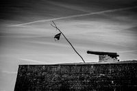 Een kanon en een vlag die de muur van Slot Loevestein in Gelderland, Nederland bewaken