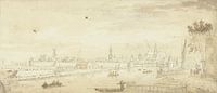 Ets, Gezicht op Haarlem met het Spaarne op de voorgrond, 1685 - 1735