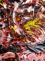 Een kleurrijk en spannend schilderij.