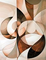 Abstract schilderij met naturel aardetinten en zalmroze accentkleur.
