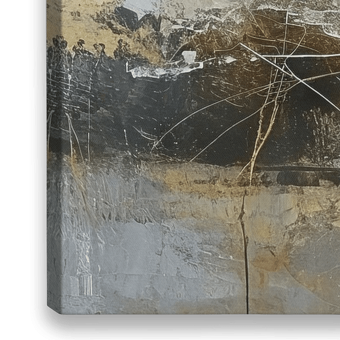 Abstract Aardetinten | Aardetinten - Hier zien we een abstract schilderij waarin rijke aardetinten vermengd worden met subtiele goudaccenten en verrassende structuurdetails. Het spel tussen matte en glanzende oppervlakken voegt diepte toe, terwijl lijnwerk en vlakken elkaar afwisselen in een harmonieuze compositie.