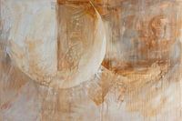 Een abstract schilderij met ronde vormen en zachte aardetinten, verrijkt met gelaagde textuur. Het werk brengt balans en rust in Japandi, Wabi-Sabi en Modern Chic interieurs en past perfect in slaapkamer, woonkamer of praktijkruimte. Als een poëtische verbeelding van stilte en harmonie.
