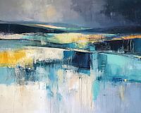 Details: abstract, landschap, modern, blauw, geel, reflectie, texturen, horizon, sereniteit, dynamisch