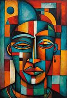 Dit kubistisch geïnspireerde abstracte schilderij vangt de essentie van het gezicht van een man, weergegeven door middel van hoekige vormen, overlappende vlakken en gebroken geometrie. Zijn portret komt niet naar voren als één vast beeld, maar als een mozaïek van perspectieven die tot één geheel worden gecombineerd. De schilderkunstige benadering verrijkt het kubistische kader en voegt textuur en vitaliteit toe aan elke streek. De sterke lijnen en verschuivende dimensies suggereren veerkracht, wijsheid en karakter, terwijl de abstractie het beeld bevrijdt van realisme, waardoor een diepere symbolische betekenis naar boven kan komen. Elke hoek, fragment en vorm wordt onderdeel van een groter ritme, waardoor een portret ontstaat dat pulseert met leven en culturele diepgang.