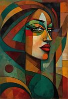 Dit abstracte Afrikaanse kubistische schilderij toont het portret van een vrouw, haar gezicht opnieuw verbeeld door middel van gedurfde geometrie en ritmische fragmentatie. Vlakken, vormen en kruisende hoeken breken haar gelaatstrekken in een dynamische compositie die zowel modern als tijdloos aanvoelt. De kubistische stijl verandert haar portret in meer dan een gelijkenis - het wordt een vormentaal, waarin scherpe randen en verzachte vlakken in harmonie samengaan. Schilderachtige texturen voegen diepte en beweging toe, terwijl de structurele balans van de compositie kracht, gratie en culturele rijkdom uitstraalt. Het resultaat is een portret dat levend aanvoelt, waarbij elke hoek nieuwe perspectieven van identiteit en expressie onthult.