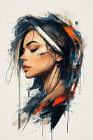 Deze prachtige grote poster heeft een artistieke weergave van het profiel van een vrouw's met levendige spetterende kunst die een overtuigende visuele impact creëert voor elke muur.