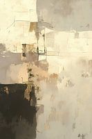 Abstract Beige - Dit is een abstract schilderij met aardetinten, waarbij verschillende beige, crèmekleurige en zwarte vlakken samenkomen, subtiele patronen tonen en hier en daar een glans van goud bevatten.