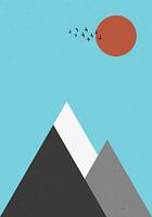 Scandinavische poster van een abstract berglandschap. De frisse blauwe achtergrond past perfect bij het zwart, grijs en wit van de bergen. Er zijn bij deze geometrische posters digitaal wat textuur aangebracht.