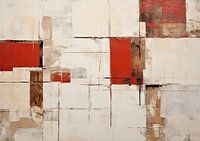 Abstract Blokken | Echoes of Urban Silence - Dit abstracte schilderij ontplooit zich als een labyrint van beige en witte vlakken, doorsneden en geaccentueerd met dieprode en donkerbruine strepen en blokken die een zowel harmonieuze als conflictueuze visuele dialoog creëren.