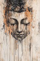 Dit indrukwekkende kunstwerk toont een sereen Boeddha-gezicht, subtiel weergegeven met vloeiende, druppelende penseelstreken die een rustige maar dynamische sfeer creëren. De mix van zwart, wit en aardetinten geeft het schilderij een minimalistische maar expressieve uitstraling, perfect voor liefhebbers van moderne kunst en spirituele…