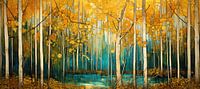 Details: bos, berken, goud, geel, blauw, turquoise, abstract, realisme, herfst, natuur, Natuurlijk wonen