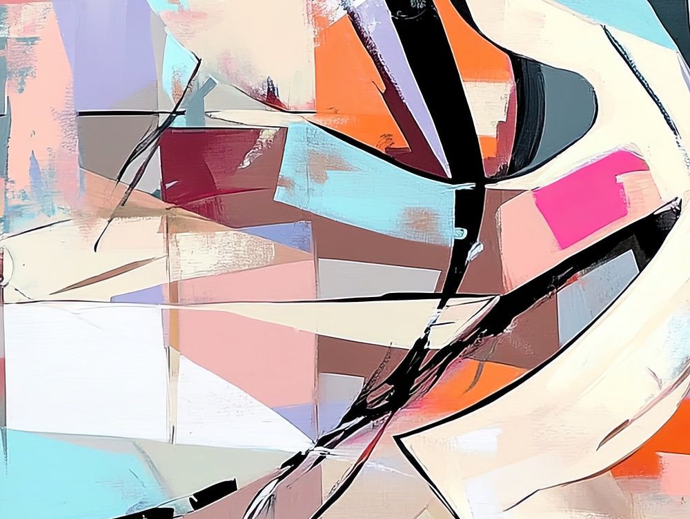Details: abstract, modern, kunst, geometrisch, vormen, lijnen, dynamisch, kleurrijk, canvas, stedelijk