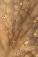 "Abstract: Druppels aan grasaren" is een macrofoto van waterdruppeltjes aan grasaren.
