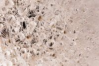 "Abstract: Druppeltjes op een paardenbloem" is een macrofoto van waterdruppels op de pluisjes van een paardenbloem.