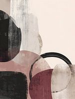Een ingetogen abstracte compositie met transparante lagen en zachte contrasten. De combinatie van roze, grijs en zwart geeft dit werk een moderne en tijdloze uitstraling. Subtiel aanwezig, maar visueel sterk.