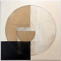 Abstract Geometrisch Beige - Het getoonde schilderij biedt een intrigerend samenspel van abstracte geometrische vormen met een evenwichtige verdeling van warme neutrale kleuren en een uitgesproken zwart element. De compositie speelt met de spanning tussen de cirkelvormige en rechte lijnen, resulterend in een tijdloos stuk dat zowel rust…