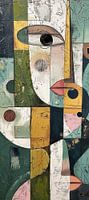 Details: abstract, modern, gezicht, kunst, geometrisch, roze, zwart, wit, groen, geel