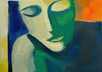 Details: abstract portret, minimalistisch, gezicht, groen, blauw, moderne kunst, zachte lijnen, dromerig,…